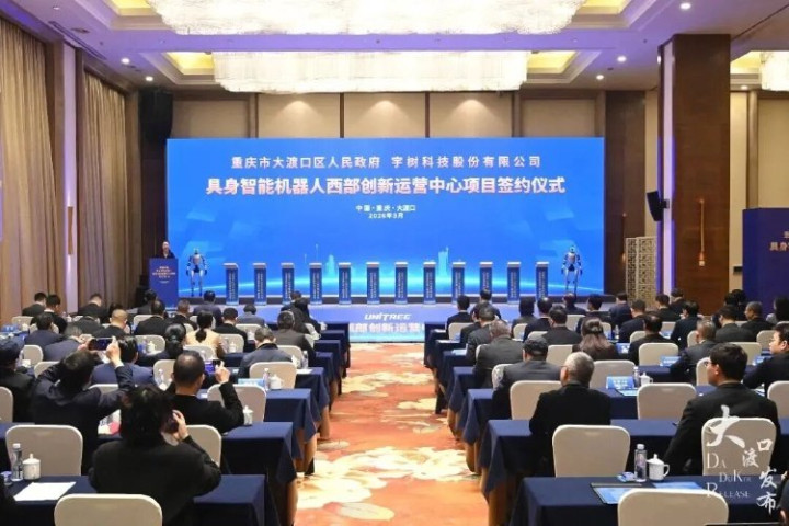 3月26日,大渡口区与宇树科技股份有限公司战略合作签约仪式举行。龙在全摄/大渡口区融媒体中心